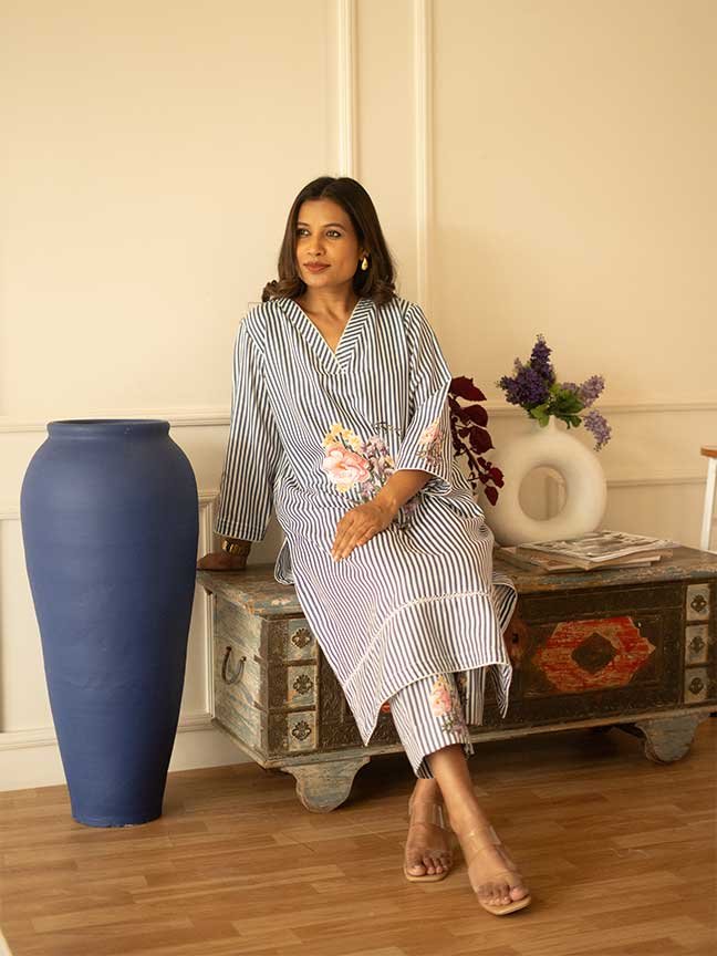 Classic Stripe Bouquet Linen Coord Set | AM to PM Collection