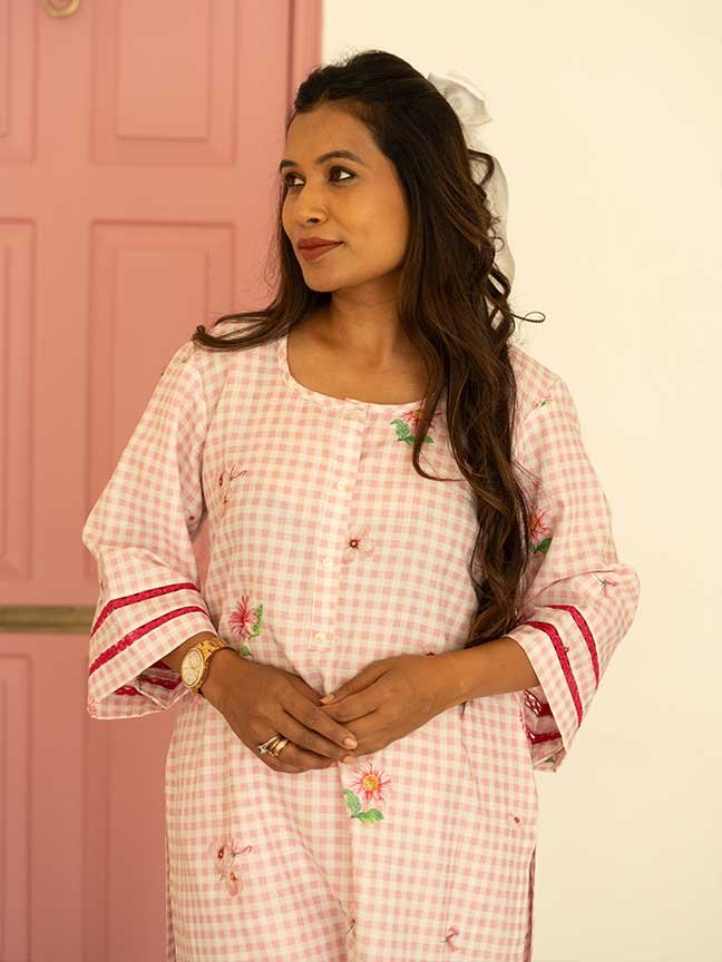 Pink Gingham Linen Coord Set | AM to PM Collection