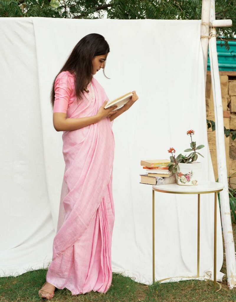 Pink Ombre Zari Pure Linen Saree